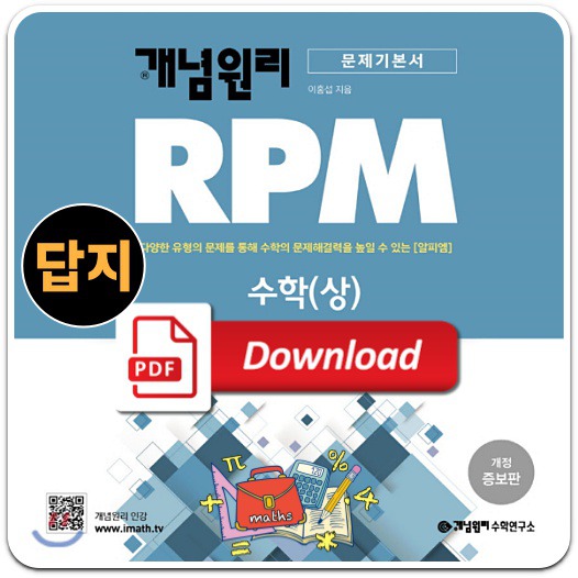 개념원리 수학 상 답지 파일 크기는 10MB 내외이며, 168 페이지로 구성되어져 있습니다. 다운로드 한 파일은 보통 로컬 PC 내 '다운로드' 폴더에 저장됩니다.
